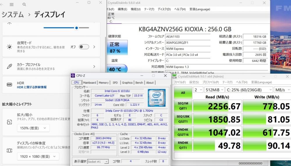 | ハードディスク: 爆速NVMe式 SSD 256GB超高速ドライブを搭載 静かで耐衝撃性に優れ、OSやプログラムなどのソフトの起動速度が大幅に高速化します!! |