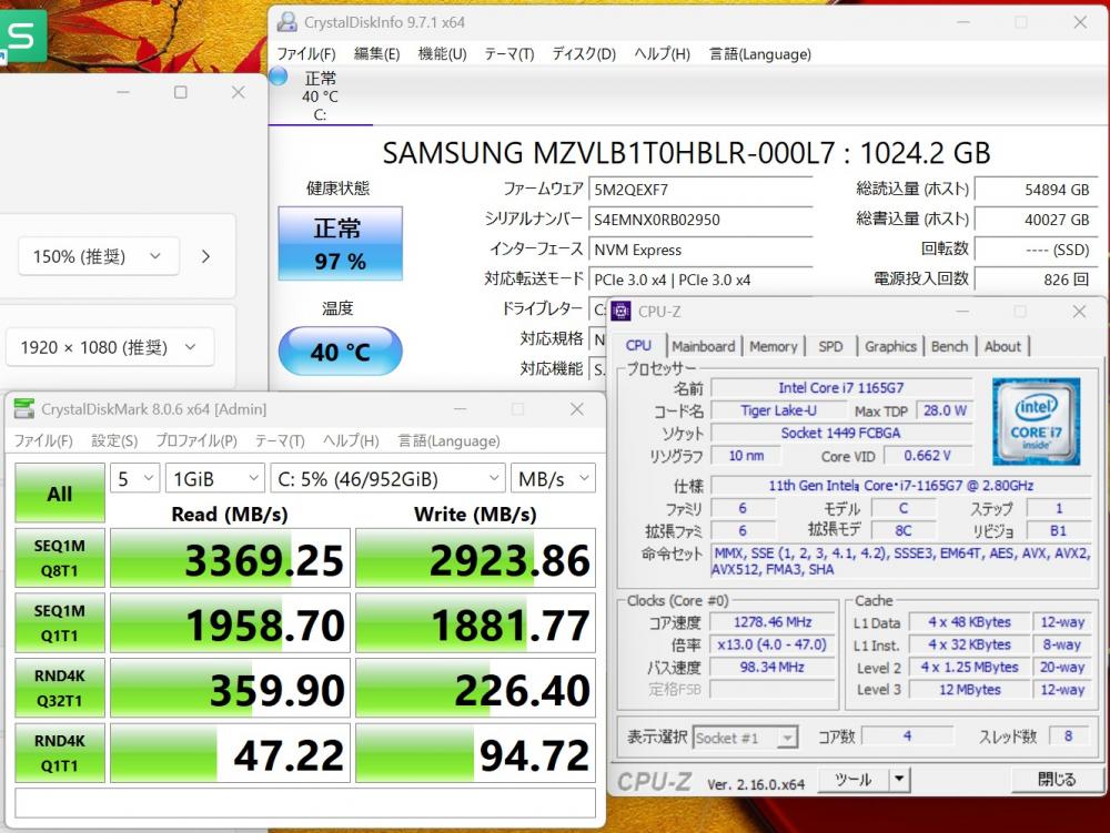| CPU: 超高速 Intel 卓越性能 第11世代Core i7-1165G7 2.8Ghz、 4コア8スレッド (ターボ・ブースト利用時の最大周波数 4.7GHz) |