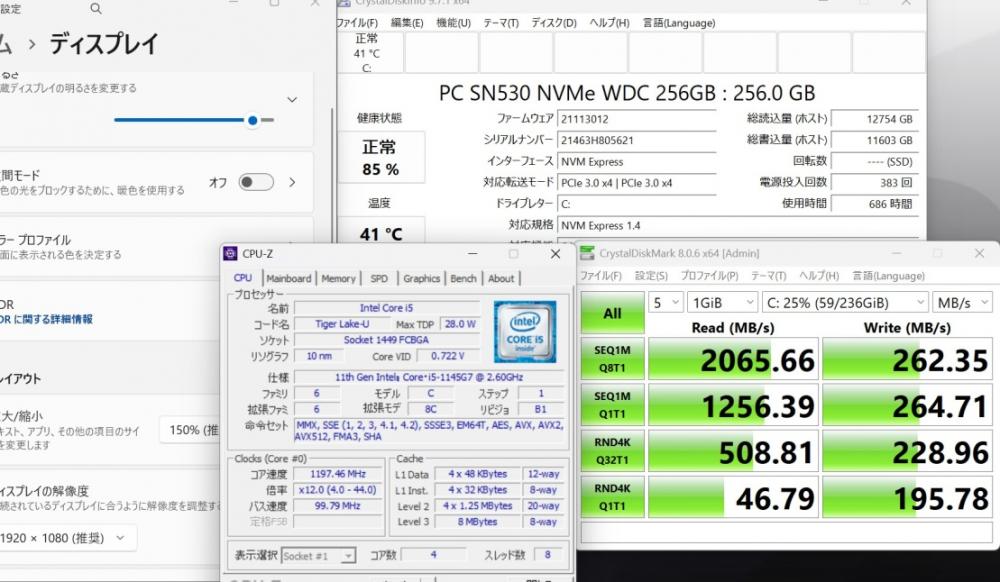 CPU:    超高速 Intel 卓越性能 第11世代Core i5-1145G7 2.6Ghz、 4コア8スレッド (ターボ・ブースト利用時の最大周波数 4.4GHz)