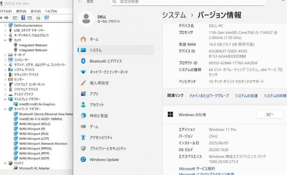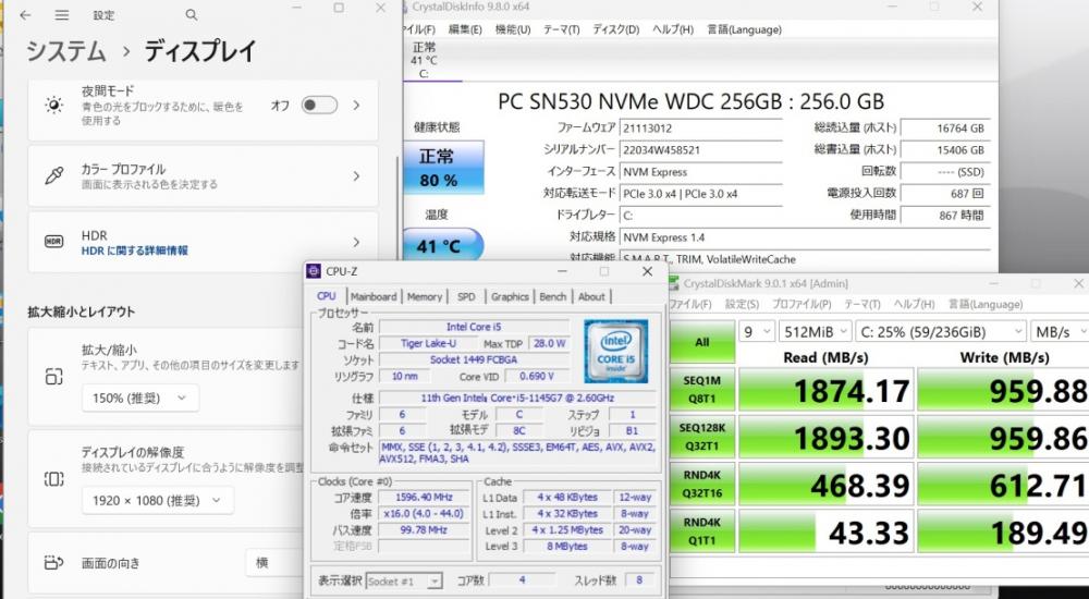 | CPU: 超高速 Intel 卓越性能 第11世代Core i5-1145G7 2.6Ghz、 4コア8スレッド (ターボ・ブースト利用時の最大周波数 4.4GHz) |