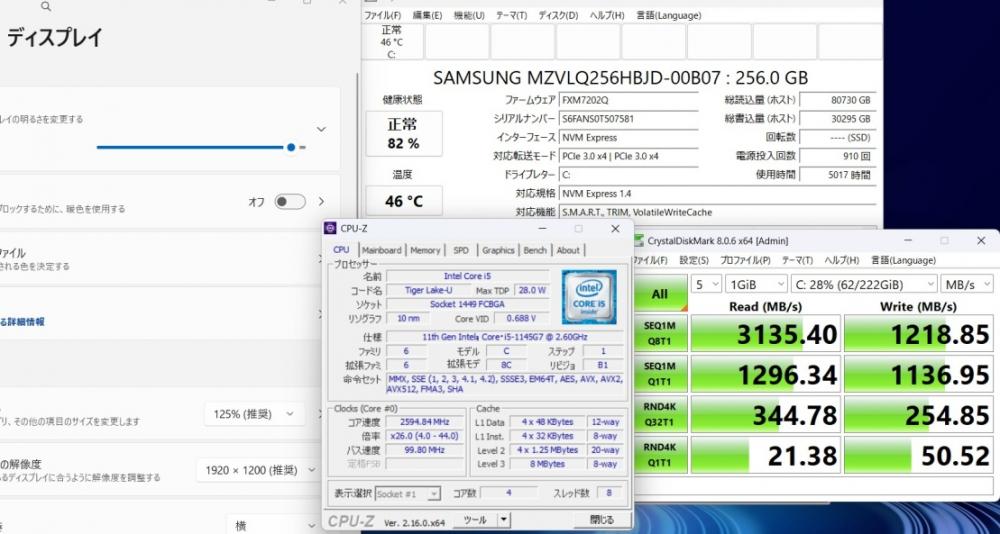 | CPU: 超高速 Intel 卓越性能 第11世代Core i5-1145G7 2.6Ghz、 4コア8スレッド (ターボ・ブースト利用時の最大周波数 4.4GHz) |