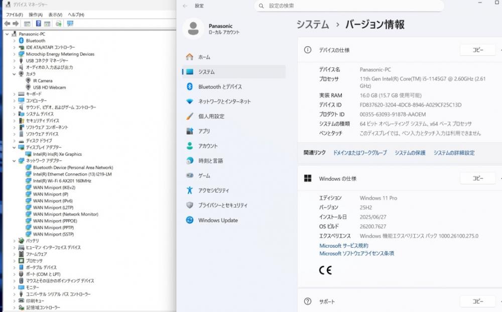 | プロダクトシール: Win11 Pro シールがあります。 |