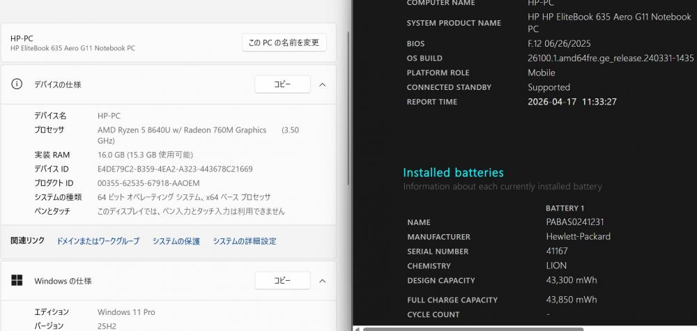 | 型番: HP 【メーカー保証付】 EliteBook 635 Aero G11 |