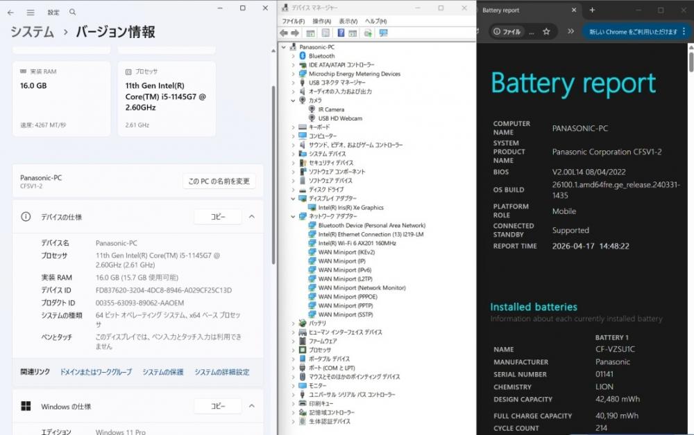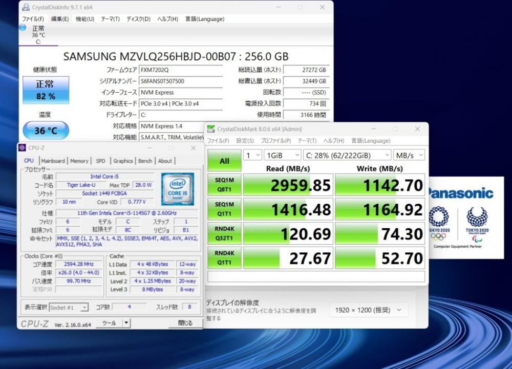 | CPU: 超高速 Intel 卓越性能 第11世代Core i5-1145G7 2.6Ghz、 4コア8スレッド (ターボ・ブースト利用時の最大周波数 4.4GHz) |