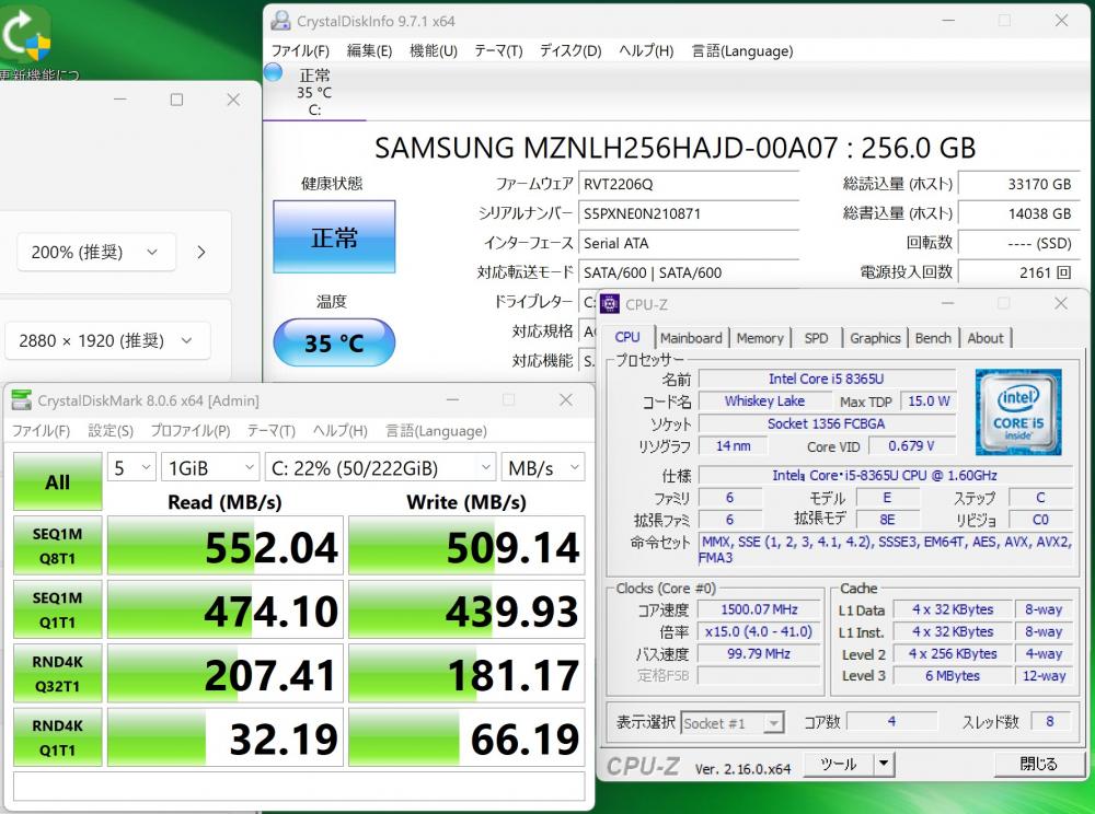 | CPU: 超高速 Intel 高性能 第8世代Core i5-8365U 1.6Ghz、 4コア8スレッド (ターボ・ブースト利用時の最大周波数 4.1GHz) |