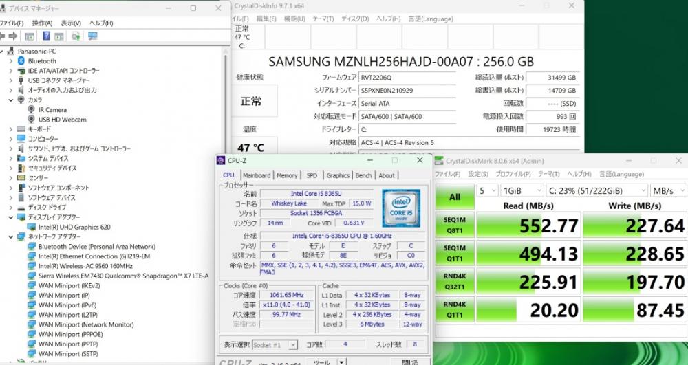 | CPU: 超高速 Intel 高性能 第8世代Core i5-8365u 1.6Ghz、 4コア8スレッド (ターボ・ブースト利用時の最大周波数 4.1GHz) |