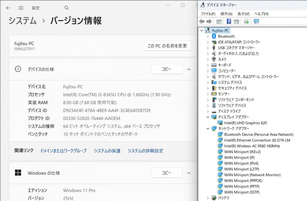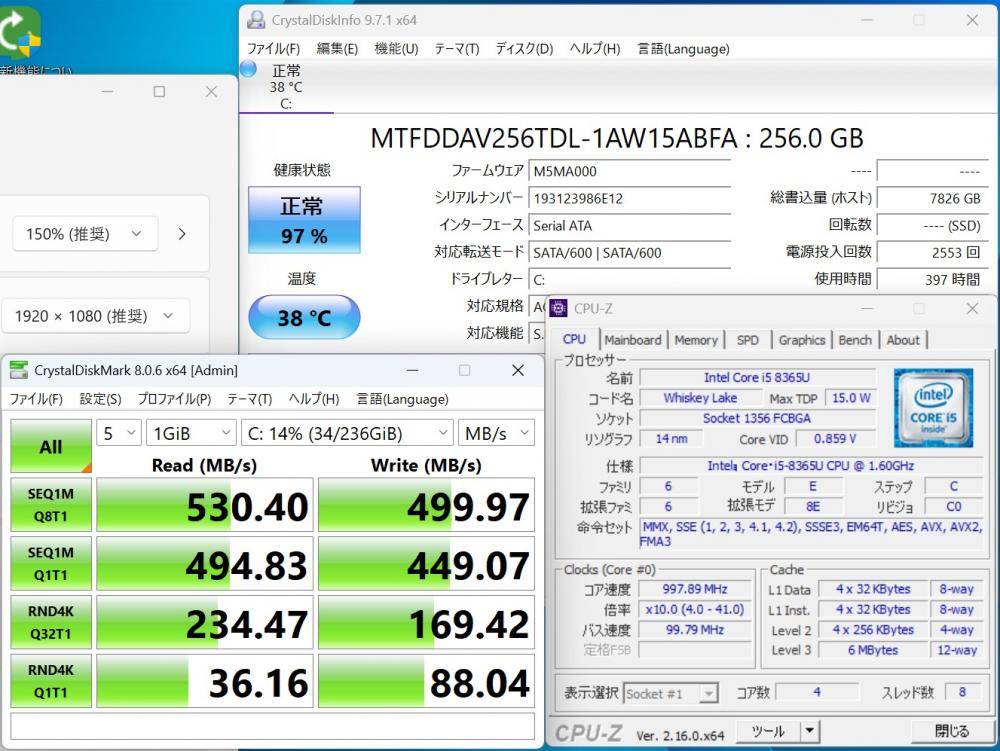 | CPU: 超高速 Intel 高性能 第8世代Core i5-8365U 1.6Ghz、 4コア8スレッド (ターボ・ブースト利用時の最大周波数 4.1GHz) |