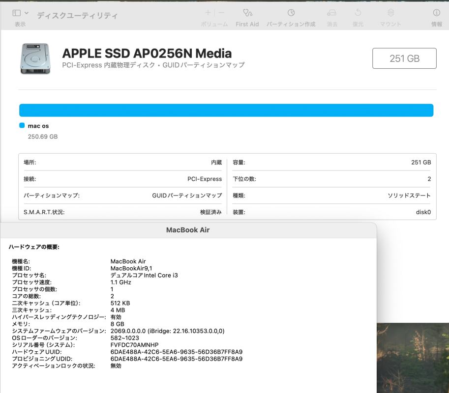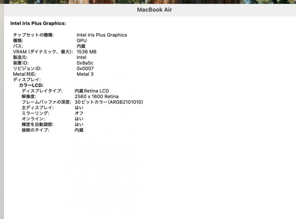 型番:     Apple  MacBoko Air A2179 (2020年) グレー
