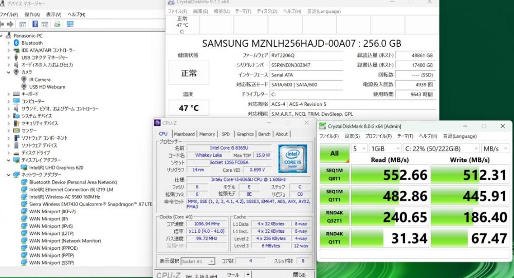 CPU:    超高速 Intel 高性能 第8世代Core i5-8365u 1.6Ghz、 4コア8スレッド (ターボ・ブースト利用時の最大周波数 4.1GHz)