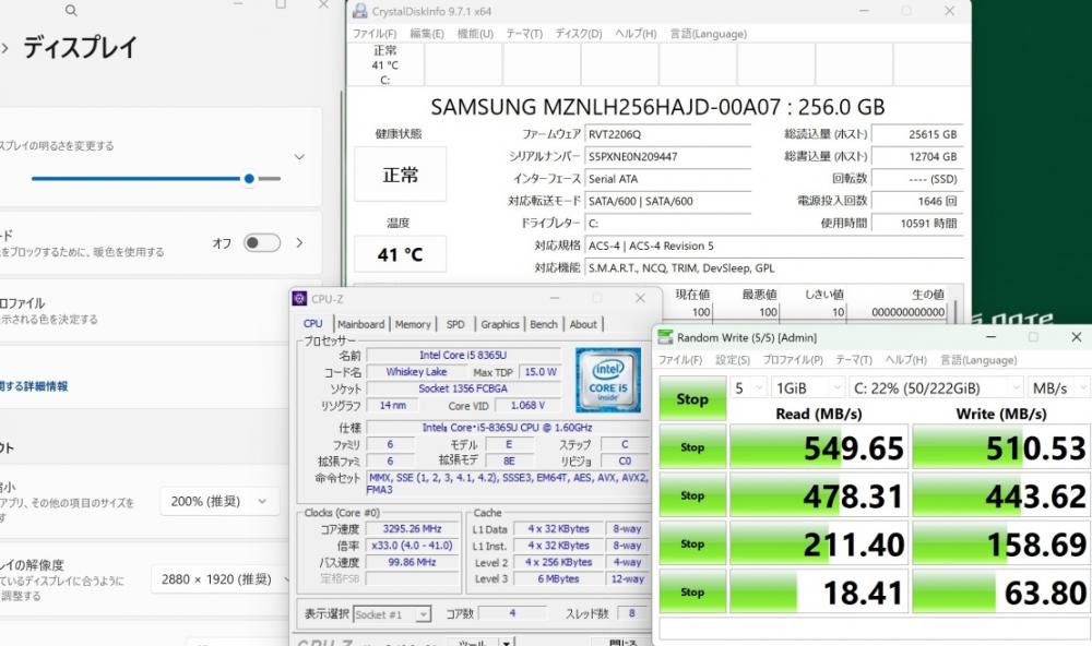 CPU:    超高速 Intel 高性能 第8世代Core i5-8365u 1.6Ghz、 4コア8スレッド (ターボ・ブースト利用時の最大周波数 4.1GHz)