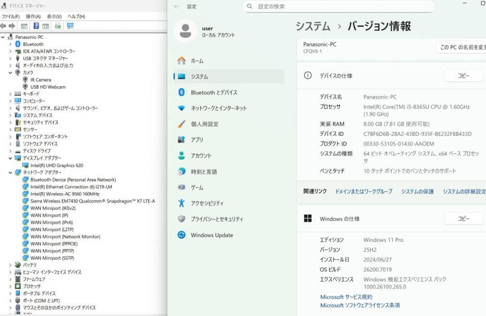 中古 2.8K液晶 12型 Panasonic Let's Note CF-QV8TFAVS Windows11 第8世代 i5-8365u 8GB 256GB-SSD カメラ LTE 無線 Office付き 中古パソコン 管:1610s