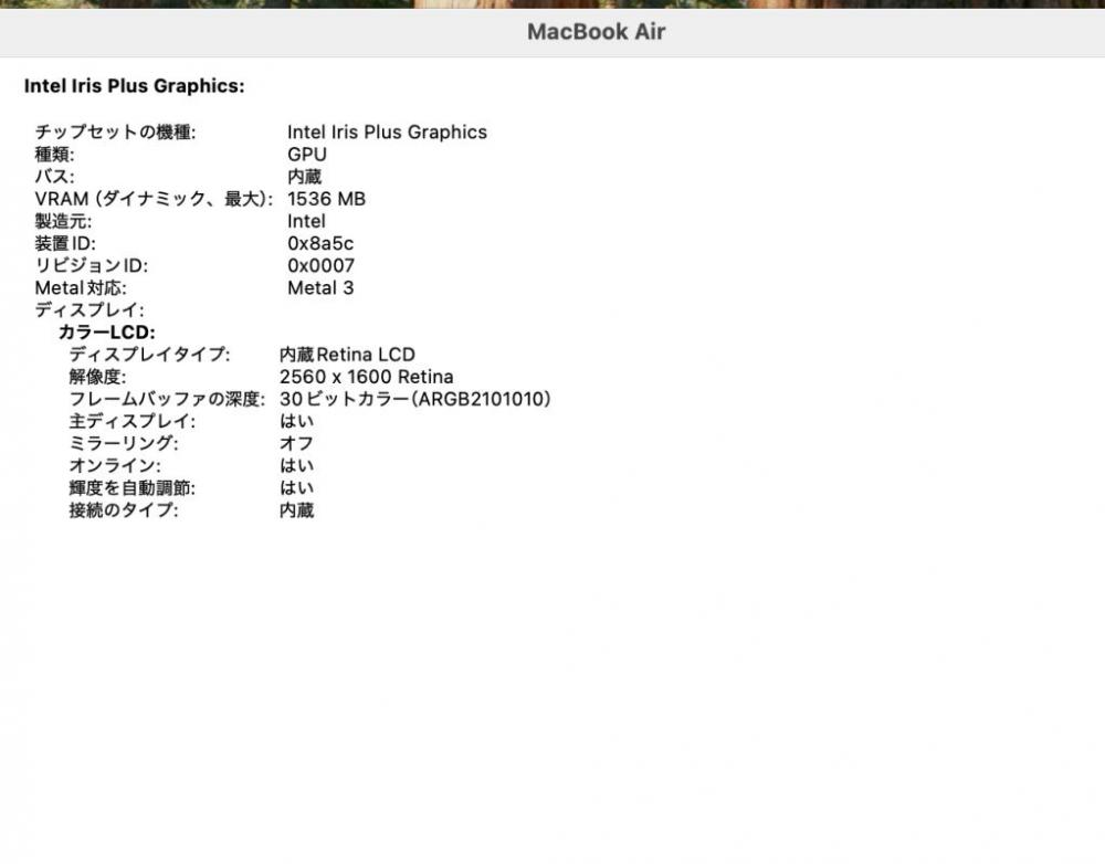 | ディスプレイ: 2K液晶 13.3インチ光沢液晶 高輝度 広視野角 LEDバックライト 2560 x 1600解像度 Retina ディスプレイ搭載により文字や写真を滑らかに表現することができます。———— |