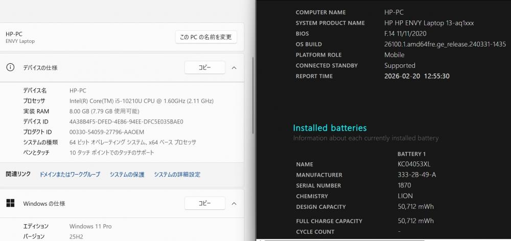 型番:     HP  ENVY Laptop 13-aql
