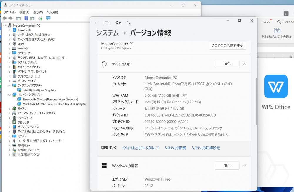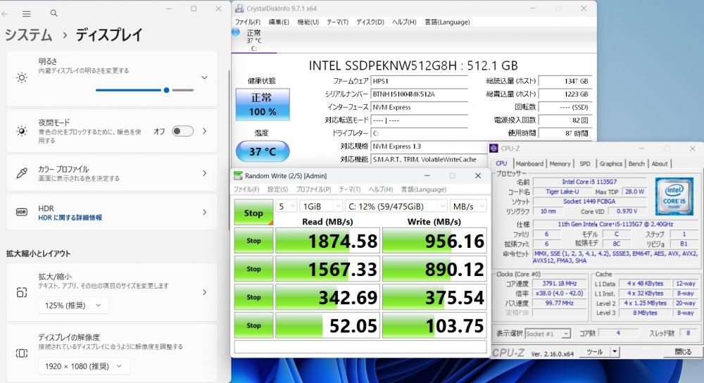 | CPU: 超高速 Intel 卓越性能 第11世代Core i5-1135G7 2.4Ghz、 4コア8スレッド (ターボ・ブースト利用時の最大周波数 4.2GHz) |