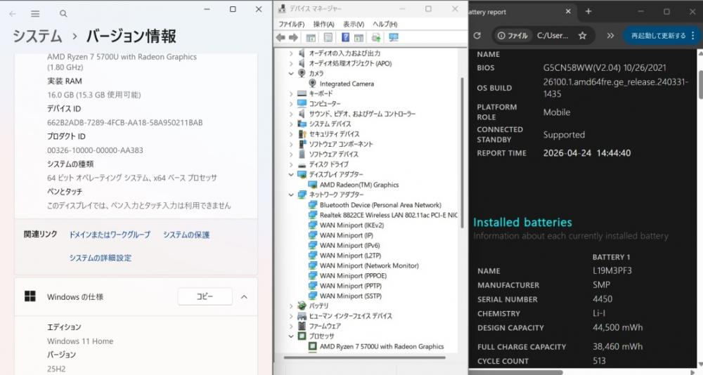 中古良品 フルHD 14型 Lenovo ideapad 5 14ALC05 Windows11 8コア AMD Ryzen 7-5700U 16GB NVMe 512GB-SSD カメラ 無線 Office付き 中古パソコン 管:1757w