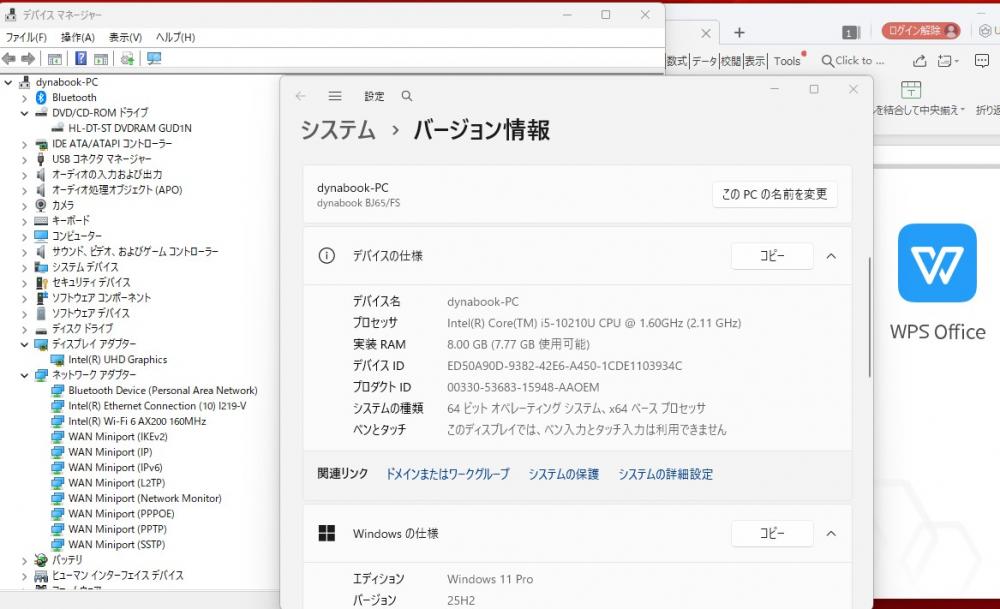 中古 15.6型 TOSHIBA dynabook BJ65FS Windows11 第10世代 i5-10210U 8GB NVMe 256GB-SSD カメラ 無線Wi-Fi6 Office付き 中古パソコン 管:1441h