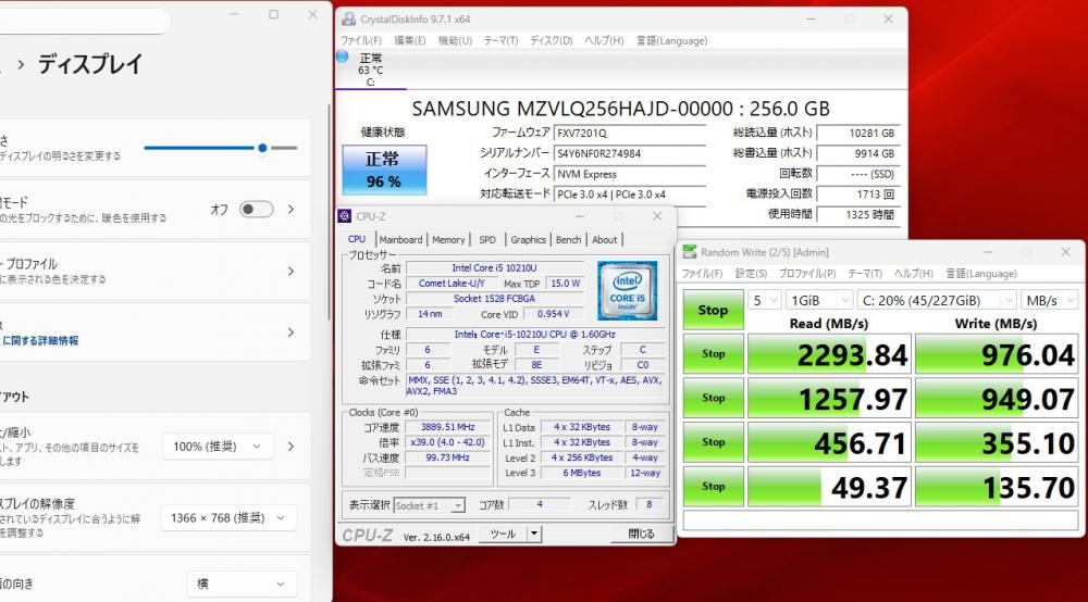 CPU:    超高速 Intel 超高性能 第10世代Core i5-10210U 1.6Ghz、 4コア8スレッド (ターボ・ブースト利用時の最大周波数 4.2GHz)