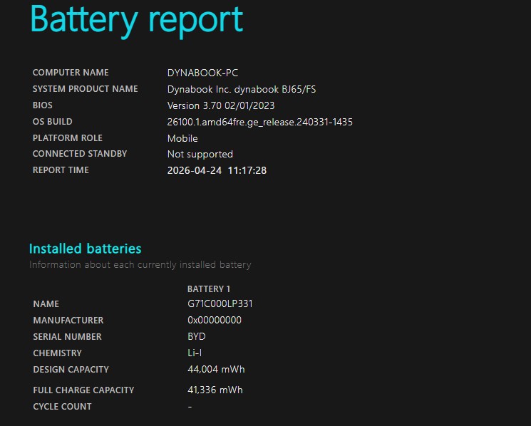バッテリー電池の健康度は 93% です。3時間位も使用可能と表示されている。 バッテリーは消耗品の為、動作補償外となります。