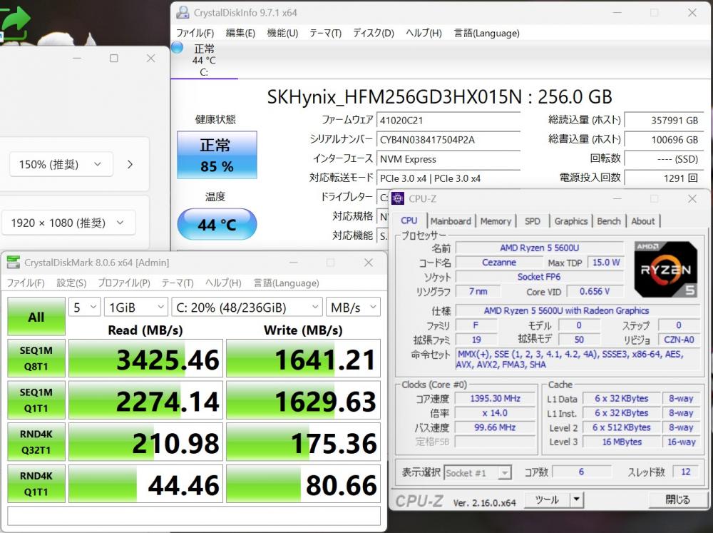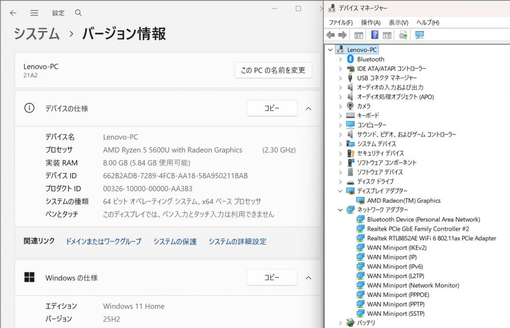 CPU:    超高速 高性能 AMD Ryzen 5-5600U 2.3Ghz、