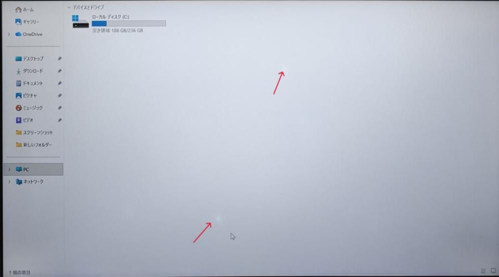 液晶画面に微かなキーボード跡と輝度ムラが見られます。