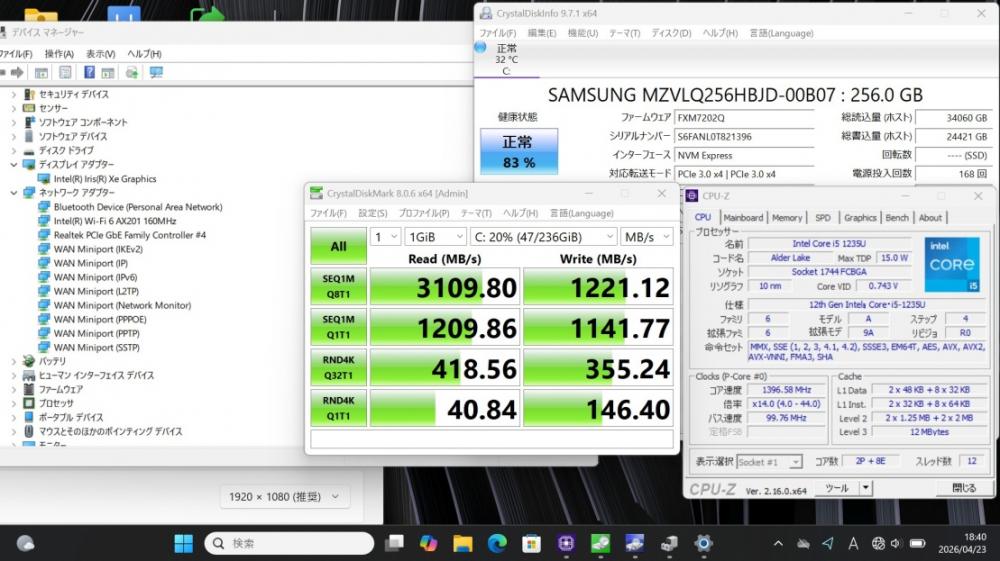 CPU:    超高速 Intel 10コア 卓越性能 第12世代Core i5-1235u 1.3Ghz、 10コア12スレッド (ターボ・ブースト利用時の最大周波数 4.4GHz)