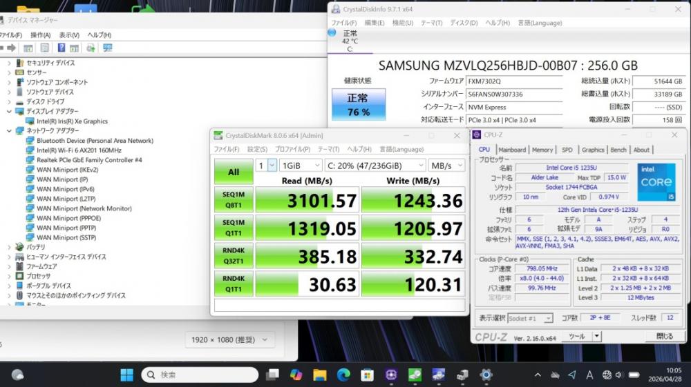 CPU:    超高速 Intel 10コア 卓越性能 第12世代Core i5-1235u 1.3Ghz、 10コア12スレッド (ターボ・ブースト利用時の最大周波数 4.4GHz)