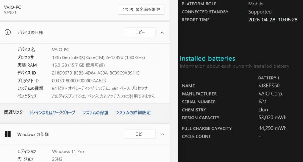 中古 フルHD 13.3型 SONY VAIO VJPG21 Windows11 10コア 第12世代 i5-1235u 16GB NVMe 256GB-SSD カメラ 無線Wi-Fi6 Office付き 中古パソコン 管:1175r