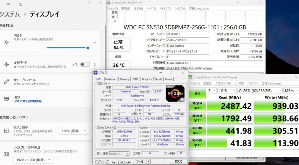 CPU:    超高速 高性能 AMD Ryzen 5-5600 3.5Ghz、 6コア12スレッド (ターボ・ブースト利用時の最大周波数 4.4GHz)