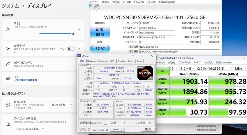 CPU:    超高速 高性能 AMD Ryzen 5-5600 3.5Ghz、 6コア12スレッド (ターボ・ブースト利用時の最大周波数 4.4GHz)